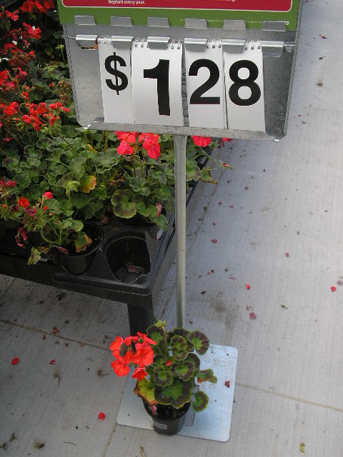 1 single geranium = $1.28