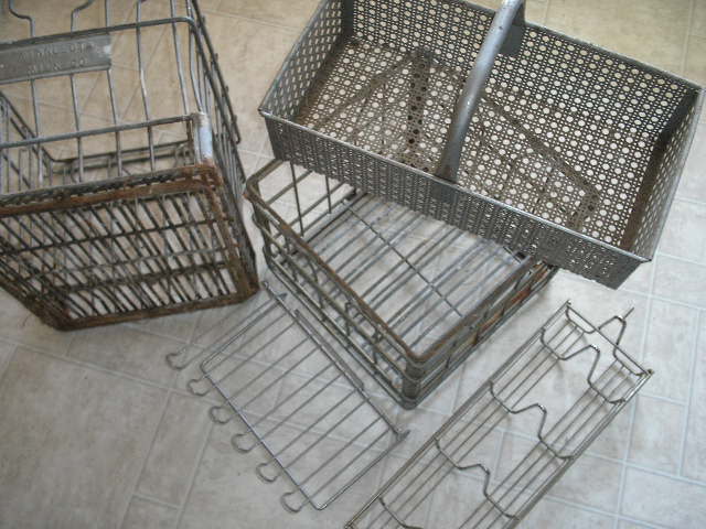 And look at these cool baskets and weird little shelf looking objects we’ve collected. My favorites are the bigger milk box that has a Minnesota tag on it, and the wonderful, metal handled basket. I know I won’t paint over the local tag as that’s part of the history of the piece.