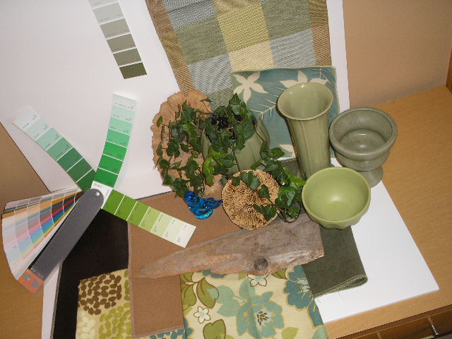 The next shot includes Paper, Fabric, Pine Branches and Ornaments, used in pieces I already owned. AND this arrangement carried me during Fall through New Years that year!