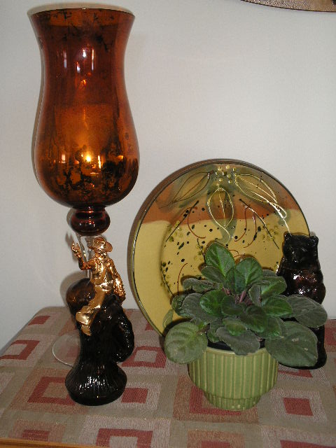 Below, the ornaments are in a beautiful, giant copper leaf piece, a gift from one of my daughters. The little “Russian Doll” snowmen another daughter and I saw years ago while shopping at Sears. They were on the check-out counter and I said how cute they were. So the clerk said “Here, you can have these!” A memory moment for sure.
