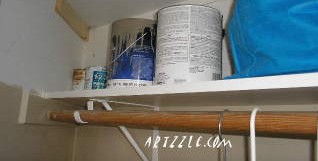 TIP: Be sure to anchor the molding strip to a stud or two on your wall. That will accommodate the weight of your hanging items, so the molding doesn’t pull away from the wall over time. Our Projects List includes eventual cabinets for the laundry room as well. For a temporary fix I added shelves, featured HERE.
