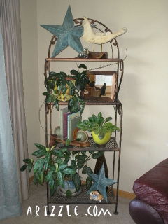 Now, everyone knows how I love to collect pottery, glass and BIG décor items and all kinds of other stuff; lots of pieces that are difficult to store, especially in a small home like ours. I got really tired of shoving everything in bins under the beds. In the first place, we only have two beds (and one is a twin), and secondly, there are things under there already.