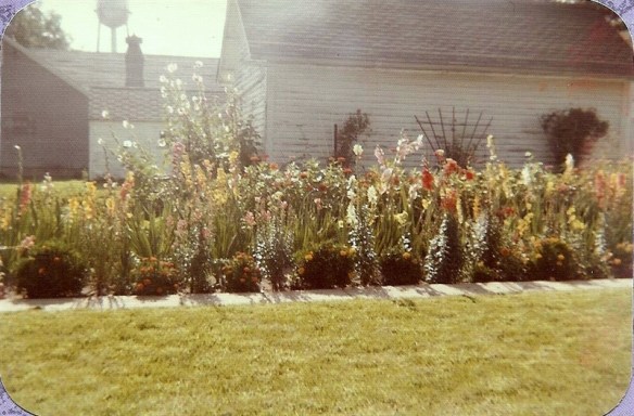 Over time, as the seats at the dinner table emptied, the gardens transitioned to nearly all flowers with just an occasional tomato plant or two. Though โin-lawsโ, my mom and aunt were as close as real sisters. Each year they would have this โunspokenโ friendly competition over who had the best garden that summer. I remember gladiolas taller than my mother, and fat, bright faced zinnias in Aunt Lilโs credenza vase.