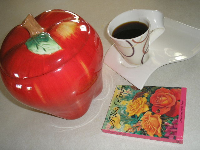 A quick, new arrangement of the collage shows them off. Don’t worry, the saucer is NOT going to fall and break this time!