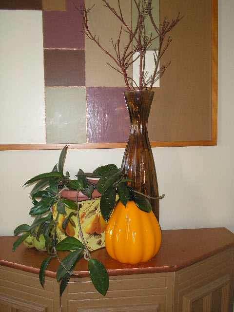 And of course, when you change one thing, there are always others that pop up. The table cover and the chair seat covers were very (normal) Fall colors, with oranges, beiges and deep burgandy. At the moment, we’re using mismatched chairs and covers.