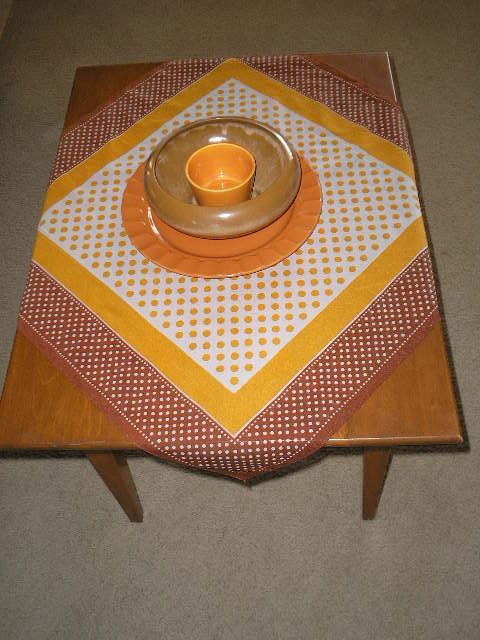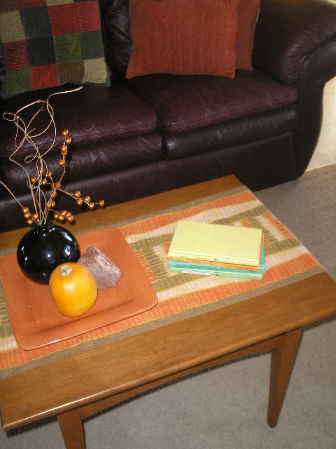To finish things, there is just enough fabric left to make a table runner. Until I get to that, I’m using a square scarf that plays well with everything.