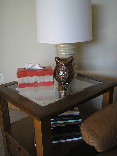 Lighting gives photos glare, but you can see the brown. The print is something my husband and I picked out for that wall when we first moved in to this home. He is very patient with all of my changing and rearranging, but the one and only time I moved the print to a different room . . . well let’s just say, he nicely requested made it clear he wanted it to stay where it had been. And I’ve been fine with that.